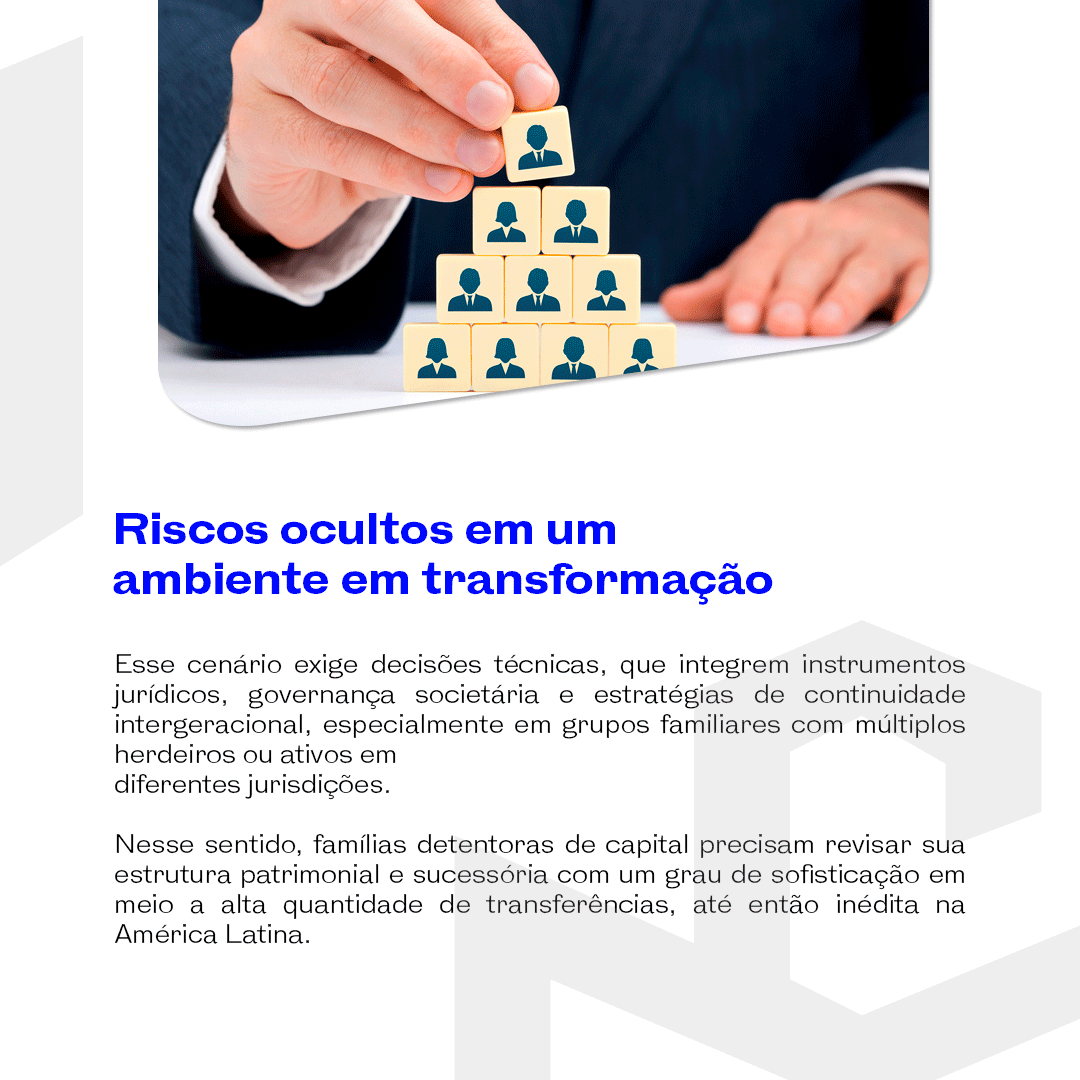 O Brasil entrou definitivamente na era da sucessão patrimonial. Com projeções que indicam uma transferência de quase US$ 9 trilhões em ativos até 2040, o país se consolida como um dos maiores mercados que mais necessita de planejamento intergeracional do mundo. Isso exige das famílias e investidores uma abordagem estratégica, técnica e preventiva sob risco de verem sua herança diluída por disputas interpessoais, ineficiência fiscal ou desorganização jurídica.