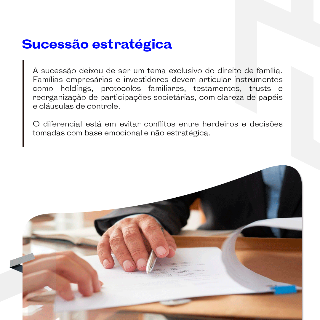 Na Pulse Capital, assessoramos famílias e organizações patrimoniais na construção de modelos sucessórios robustos, com integração entre estratégia jurídica, governança societária e proteção tributária. Atuamos com precisão técnica para garantir que a transição de capital ocorra com segurança, continuidade e respeito ao legado construído.