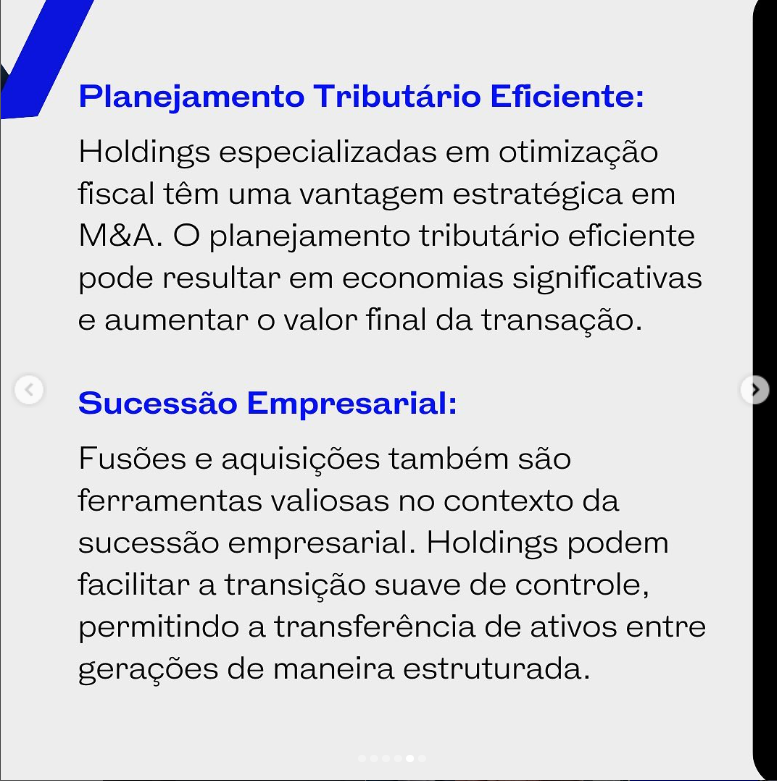Se você está explorando possibilidades de M&A ou buscando a melhor estratégia para sua holding, estou à disposição para oferecer insights especializados e orientação personalizada.