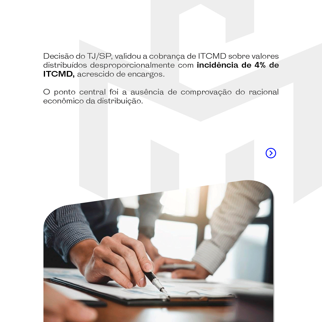 No caso analisado, a ausência de comprovação do fundamento econômico levou à incidência de ITCMD sobre valores distribuídos além da participação societária, mesmo sendo uma prática admitida pela legislação civil.