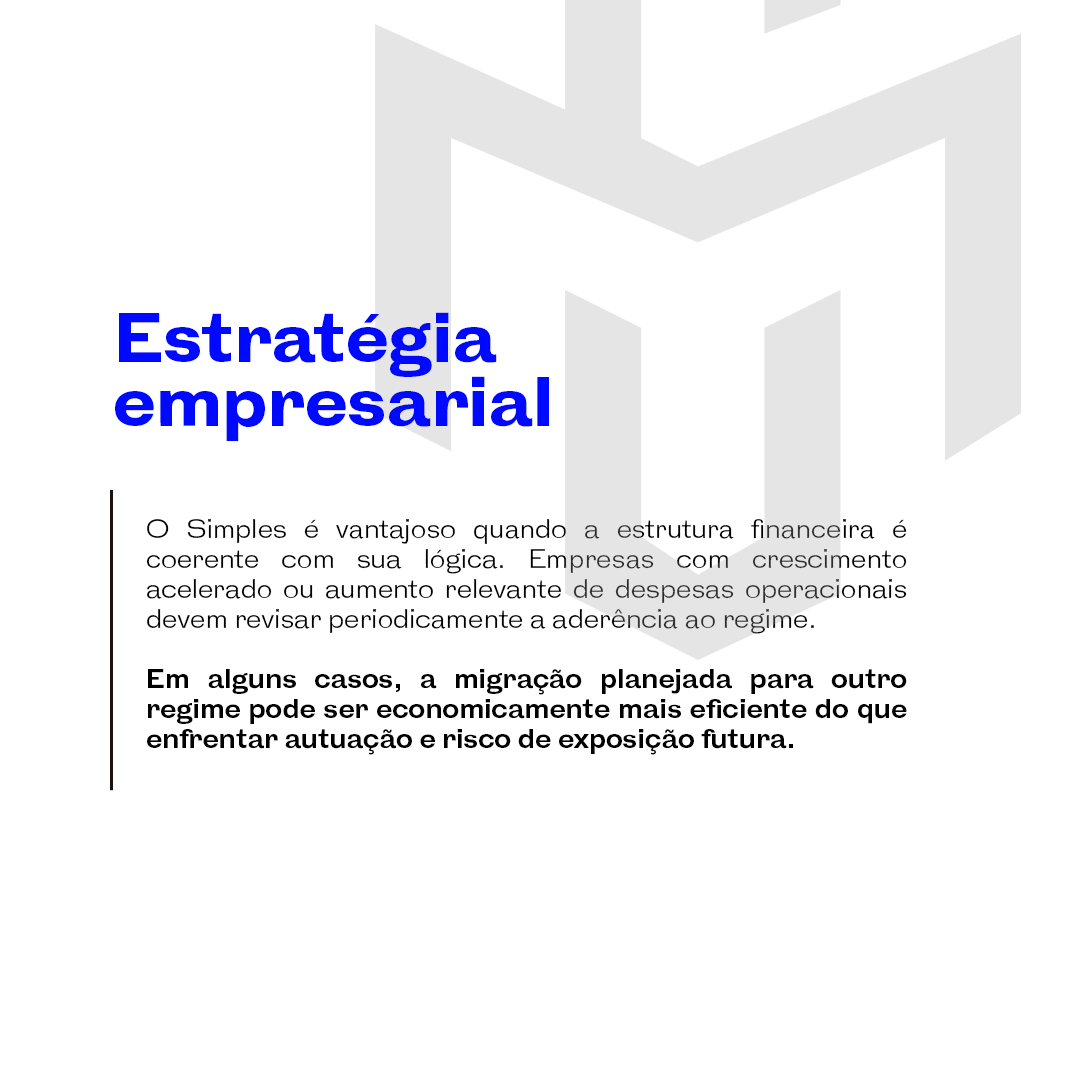 O planejamento tributário responsável exige monitoramento periódico da coerência financeira da empresa e análise estratégica sobre a permanência no regime.