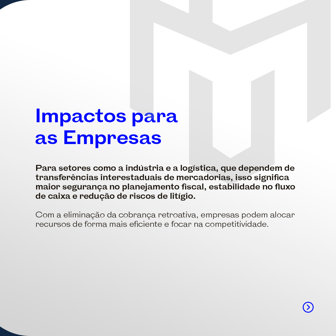 Para o setor produtivo, em especial indústrias e empresas com logística interestadual, a medida traz estabilidade regulatória e maior confiança na tomada de decisões.