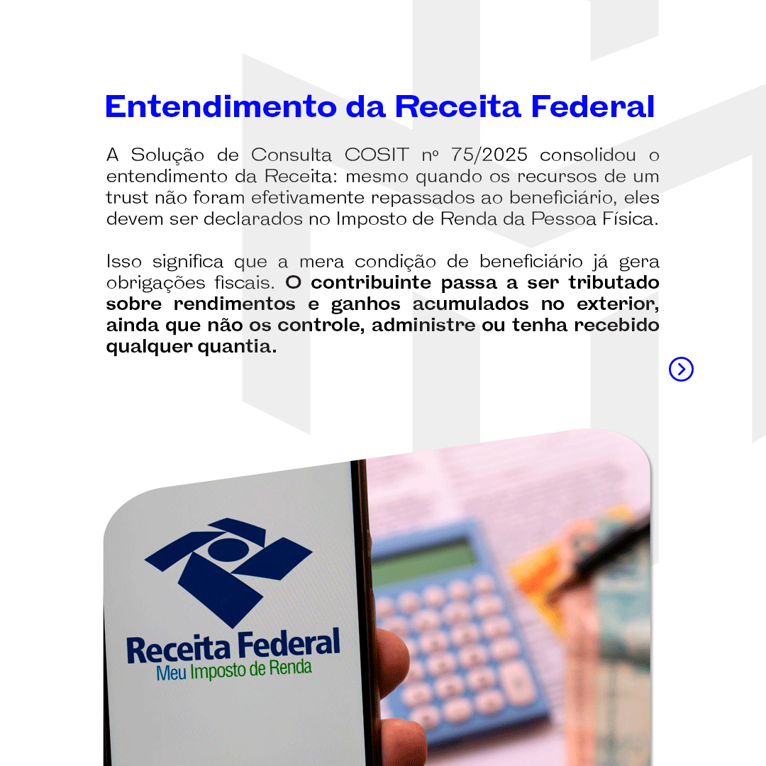 A consolidação do entendimento da Receita Federal sobre a exigência de declaração e incidência de IRPF por parte de beneficiários de estruturas fiduciárias localizadas fora do Brasil marca um ponto de inflexão na forma como o patrimônio internacional deve ser gerido.