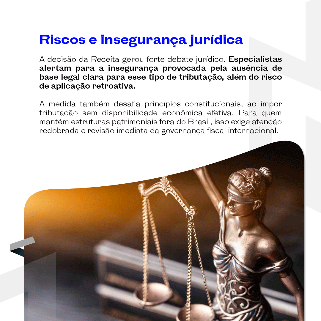 Esse novo cenário exige que estruturas transnacionais sejam reavaliadas. O que antes era tratado como planejamento estratégico de longo prazo, agora demanda reposicionamento financeiro e jurídico imediato.