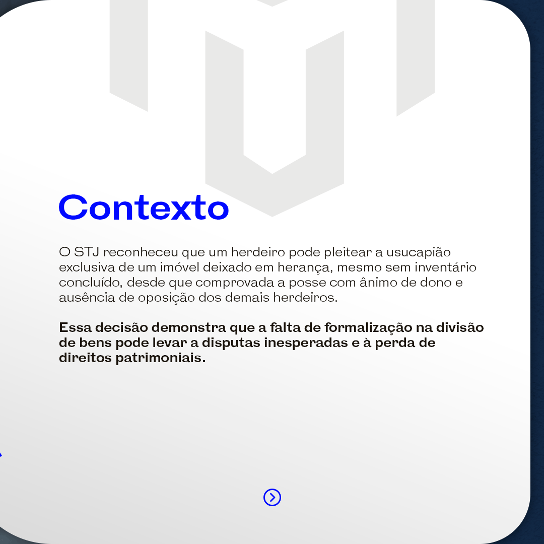 A decisão do STJ sobre a possibilidade de usucapião de bens herdados evidencia um risco real para famílias que deixam imóveis e ativos sem inventário finalizado ou regras claras de uso. No caso julgado, um herdeiro que ocupava o imóvel por mais de 15 anos teve reconhecida a posse exclusiva por ausência de oposição dos demais irmãos.