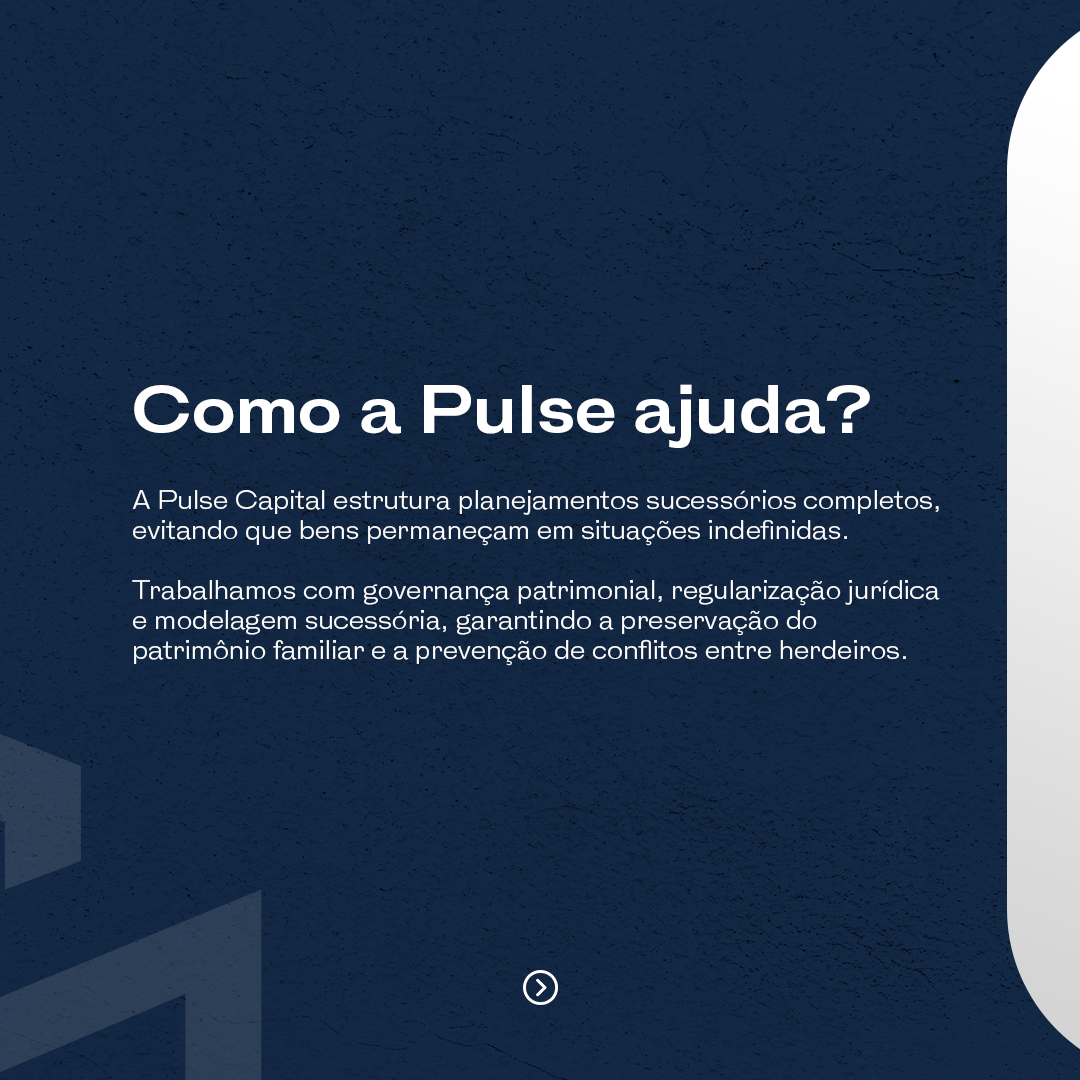 Na Pulse Capital, nossa abordagem multidisciplinar garante que o patrimônio familiar seja protegido com governança, planejamento jurídico e soluções fiscais seguras.