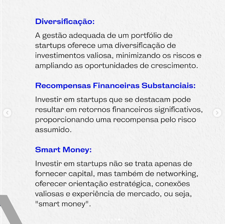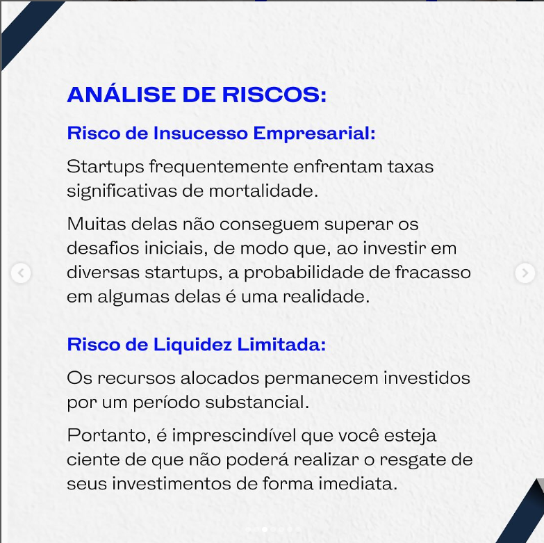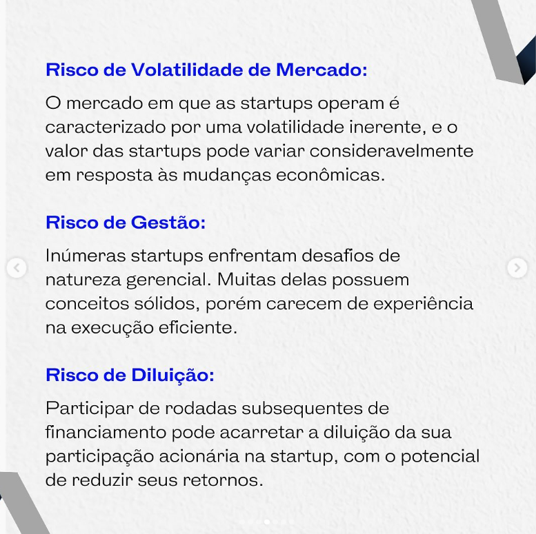 Nossos especialistas compreendem os riscos inerentes a investir em startups, mas também reconhecem as recompensas substanciais que podem ser alcançadas. O Venture Capital é um mundo onde oportunidades e desafios coexistem. É por isso que estamos comprometidos em ser seu guia confiável.